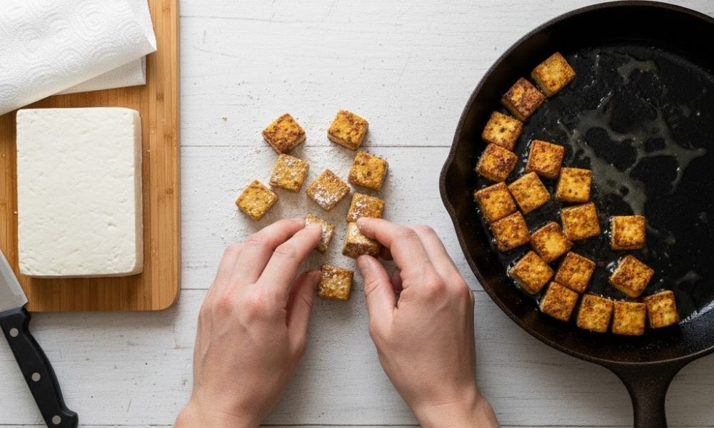 - Optional: Toss tofu lightly in cornflour for extra crispiness.